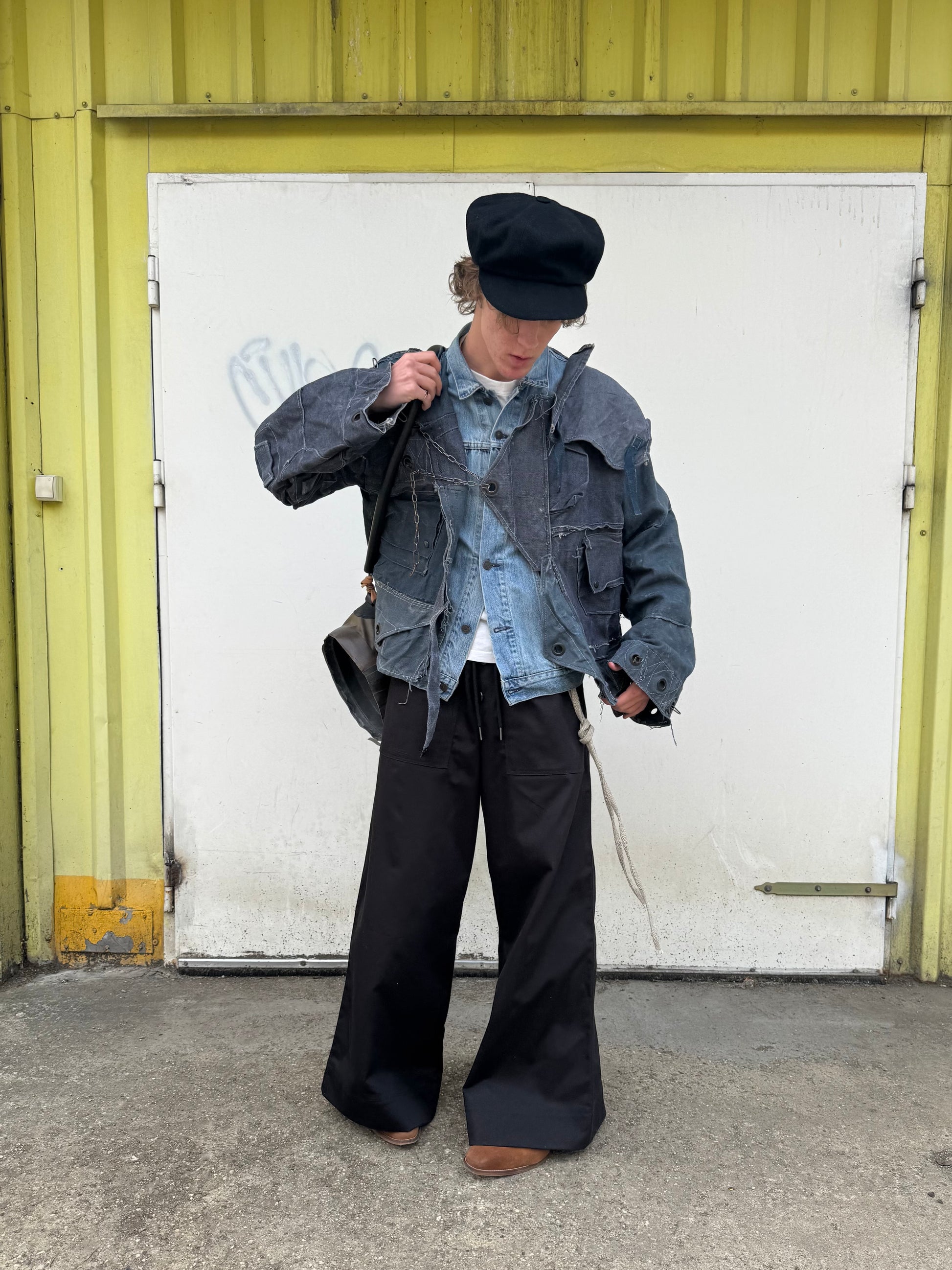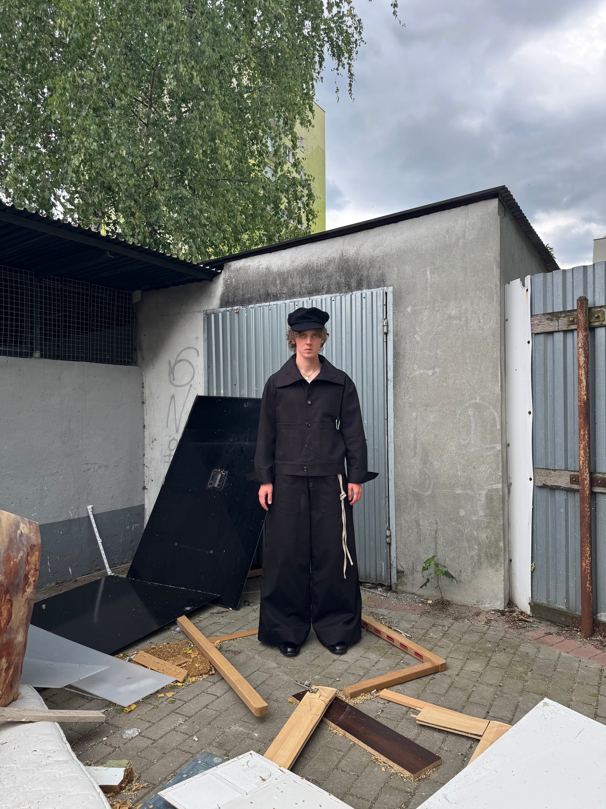 A classic sailor silhouette filtered through the dystopian aesthetic of a working harbor and industrial minimalism.